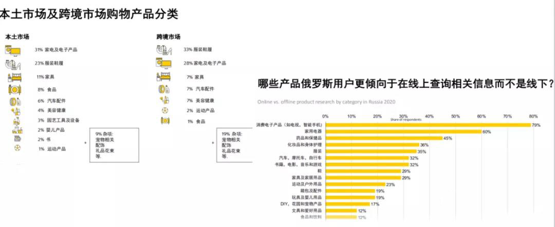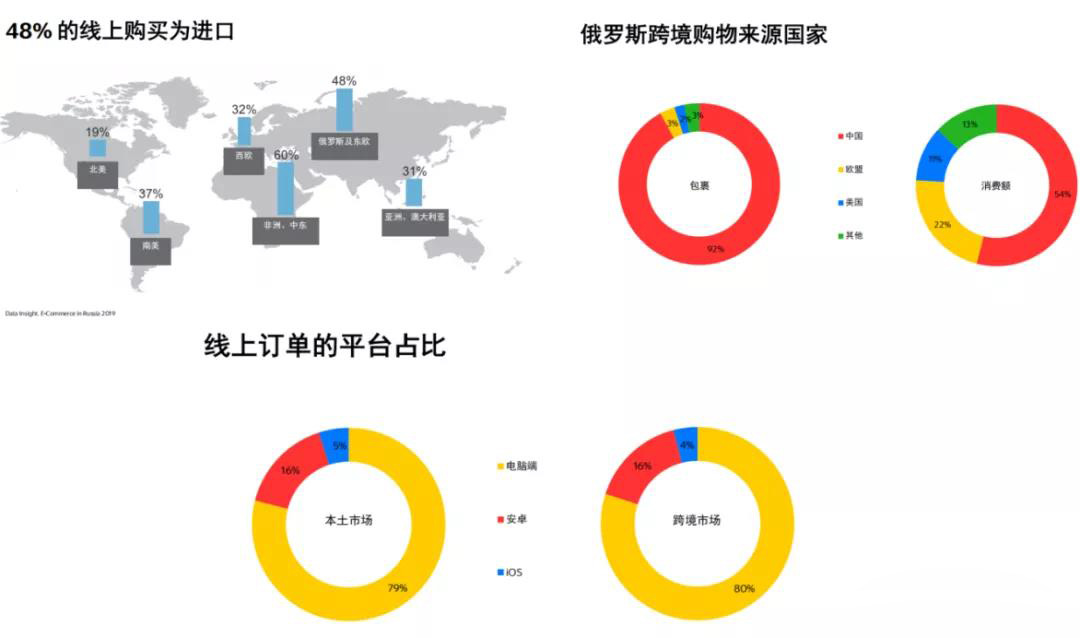 經(jīng)數據調查顯示,俄羅斯及東歐市場(chǎng)48%的線(xiàn)上購買(mǎi)為進(jìn)口,且中國在俄羅斯跨境購物來(lái)源中占據重要位置,這就為中國電商企業(yè)進(jìn)入俄羅斯市場(chǎng)提供了強有力的數據支撐。