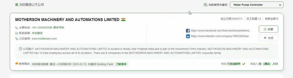2、可以幫助外貿銷(xiāo)售人員調整獲客模式,除被動(dòng)等詢(xún)盤(pán)回郵件以外主動(dòng)搜尋意向客戶(hù),豐富自己的潛在客戶(hù)儲備庫,實(shí)現意向客戶(hù)積累。
