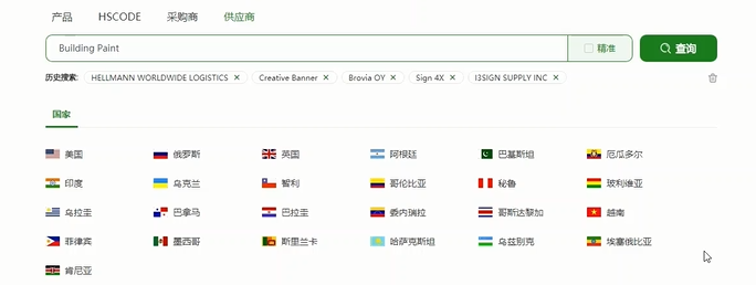 支持多種方式查詢(xún):包括國家、產(chǎn)品、HSCODE、采購商、供應商